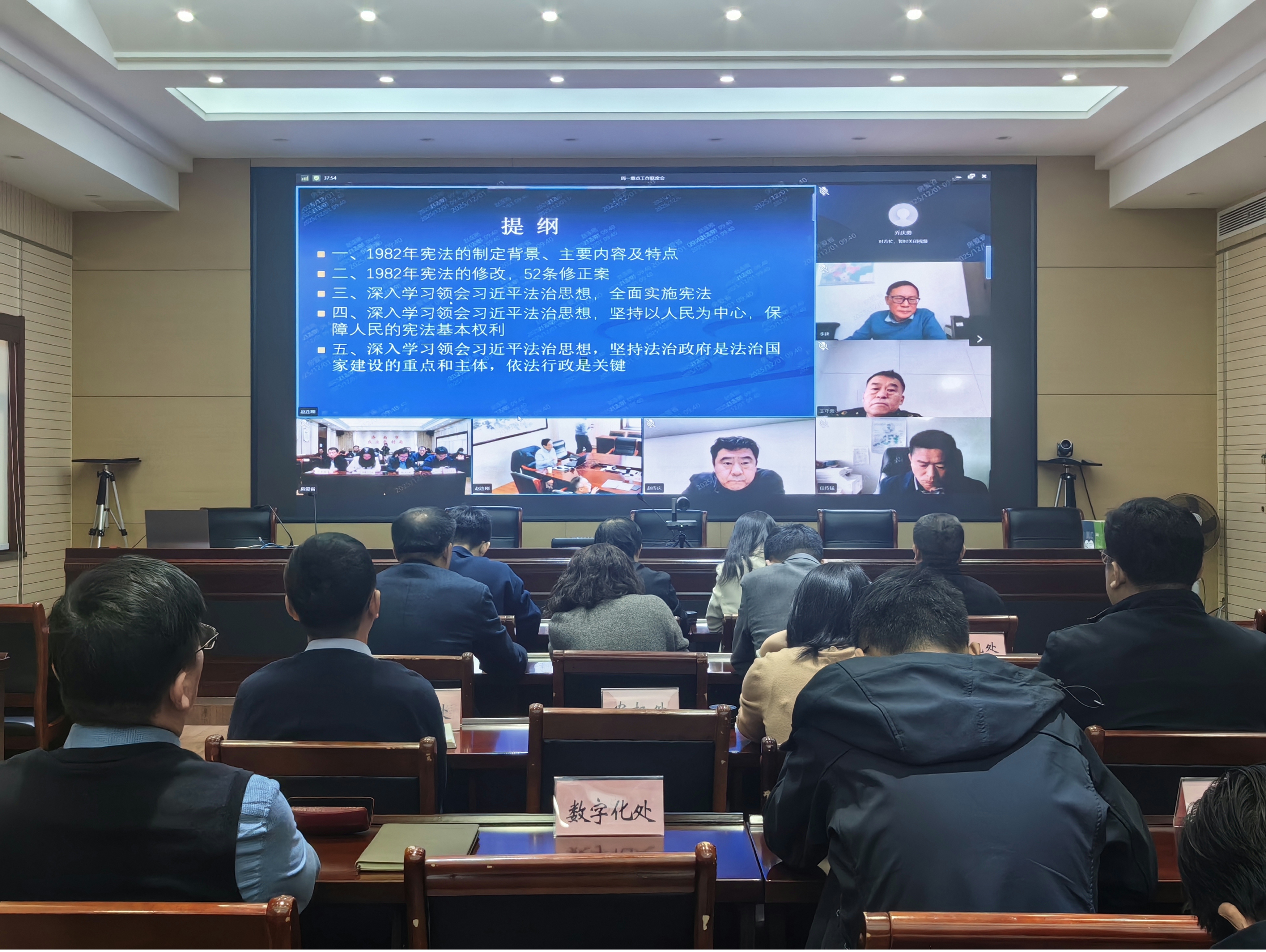 今年12月4日是第十二个国家宪法日,12月1日至7日是全国第八个“宪法宣传周”,12月份是第九个山东省法治宣传教育月。为进一步提升领导干部宪法意识、推动宪法在农业农村领域全面贯彻实施,12月1日,市农业农村局党组举办宪法讲座,邀请习近平法治思想宣讲团成员、济南大学政法学院教授、北京市盈科(济南)律师事务所律师杨士林作《深入学习1982年宪法全面贯彻落实习近平法治思想》专题报告。