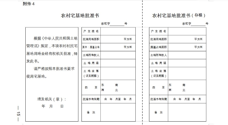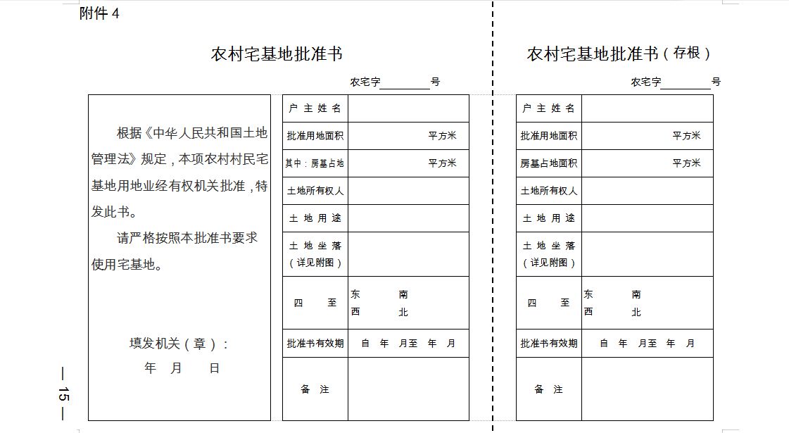 3.制作发放审批文书。对符合审批条件的,制作《农村宅基地批准书》并加盖骑缝章,自联审合格之日起,于5个工作日内发放《农村宅基地批准书》和《乡村建设规划许可证》,审批文书存根由镇人民政府留存并同步将审批情况书面报区县(功能区)农业农村、自然资源等部门备案。