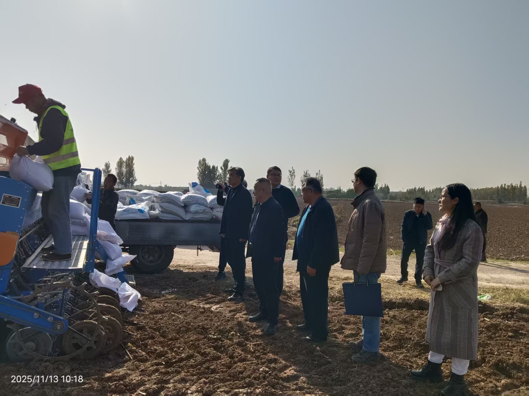 11月13日,市农业技术推广服务中心专职副书记李秀深带领三秋指导组第一组,陪同农业技术推广服务中心副主任江平到章丘区指导当前生产,实地深入了解全市秋种以来抗湿晚播技术宣传、应变指导、培训观摩、帮保服务等工作开展情况,在相公街道鲁供丰农基地,详细查看小麦播种质量,了解公司整个基地播种进度,现场进行生产关键技术指导,抢抓天气、墒情适宜时机,全力加快推进秋种,夯实粮食安全基础。