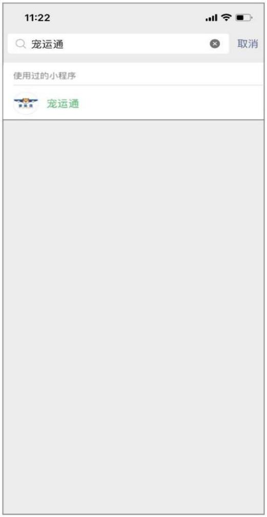 微信小程序搜索:“宠物通”,打开宠运通微信小程序。