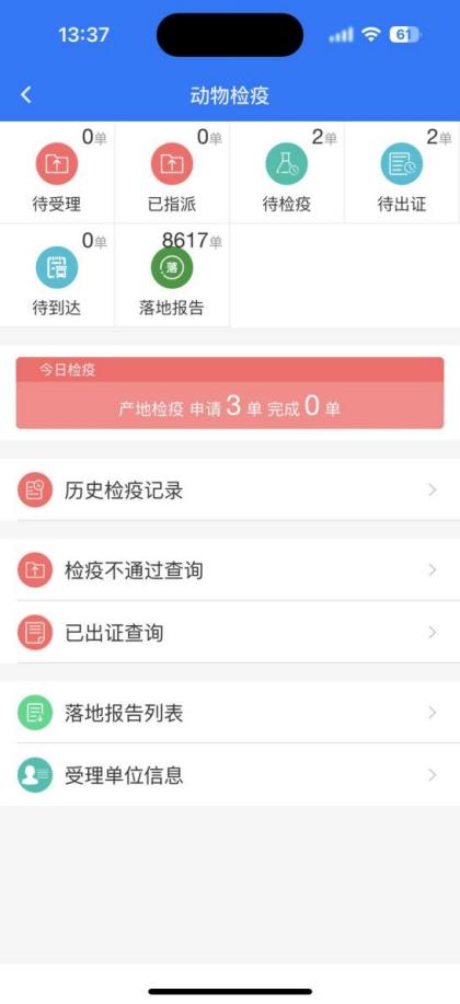 检疫申报单会推送到所属区域官方兽医,进行检疫申报受理等操作。 | |